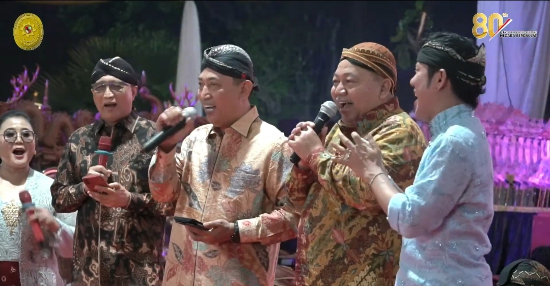 Para tamu menyaksikan langsung penampilan sahabatnya di atas panggung. Kehadiran mereka menunjukkan apresiasi tinggi dari dunia hukum terhadap nilai luhur budaya wayang sebagai medium pendidikan karakter.